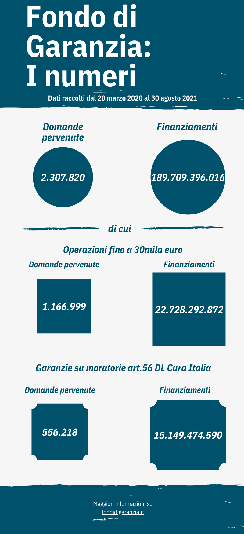 Con l'arrivo di settembre, abbiamo pensato di condividere con voi l'andamento del Fondo di Garanzia. Un totale di 2.307.820 domande con un erogazione di finanziamenti pari a 189.709.396.016.